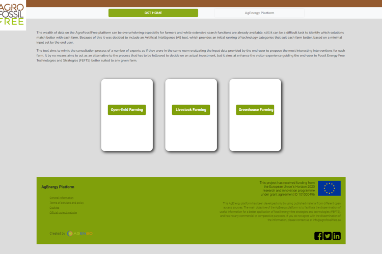 AGENSO is designing and developing the AgEnergy Platform, the virtual test-bed and the web portal and web collaboration tool. This aims to allow knowledge sharing regarding defossilization of EU’s agriculture.